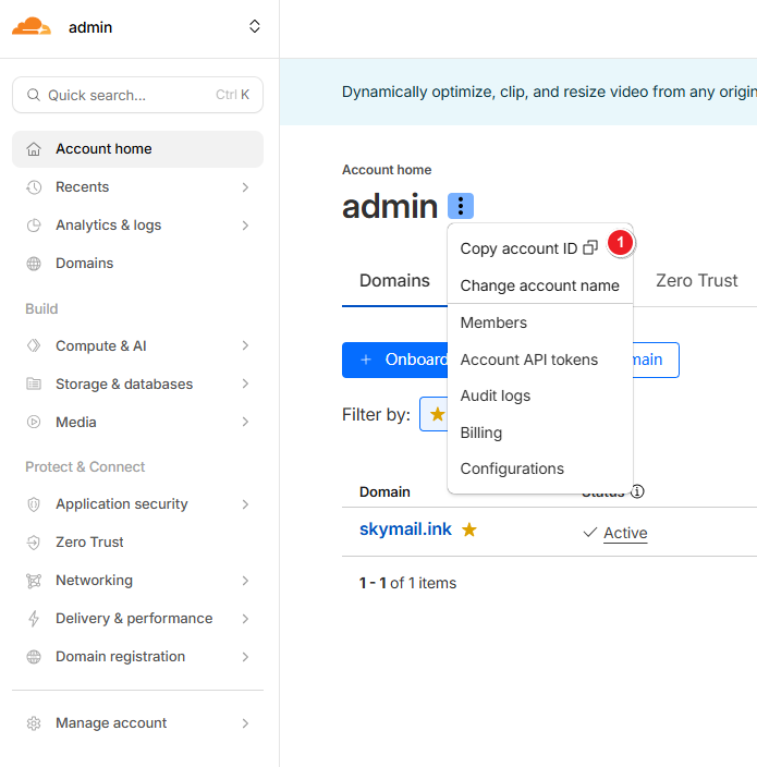 Copy the Cloudflare account ID.
